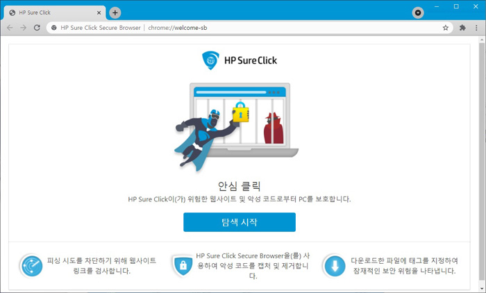 이 제품은 다양한 보안 S/W를 기본 제공해 중요 데이터를 안전하게 관리할 수 있다. HP 의 대표 보안 프로그램인 클라이언트 시큐리티의 실행 모습으로 Sure Recover 지원으로 OS에 문제가 발생했을 때 네트워크 연결을 통해 안전하게 최신 OS로 복구할 수 있다.