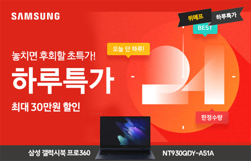 유니씨앤씨는 가정의 달을 맞아 Super AMOLED 디스플레이와 최신 인텔 11세대 타이거레이크, 그립감이 뛰어난 S펜이 탑재된 삼성 갤럭시북 프로360 NT930QDY-A51A 대상으로 최대 30만원 중복 할인과 푸짐한 혜택이 주어지는 ‘하루특가’ 프로모션을 2022년 5월 12일 단 하루 동안 위메프를 통하여 단독 진행한다.