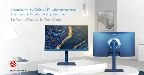 레드닷 디자인 어워즈 2021 수상 영예와 함께 청량한 푸른빛 컬러가 매력인 ‘MSI 모던 MD241P 울트라마린 에디션’도 이번 행사에 포함, 최대 할인 적용 시 18만원 대에 만날 수 있다. 특히 높낮이, 상하/좌우 각도, 90˚회전을 포함한 멀티스탠드 기능과 USB Type-C 포트 지원, 내장 스피커 탑재, 간편조립(Tool-Less) 기능은 아름다운 디자인과 함께 실용성까지 완성했다는 호평을 받고 있다.