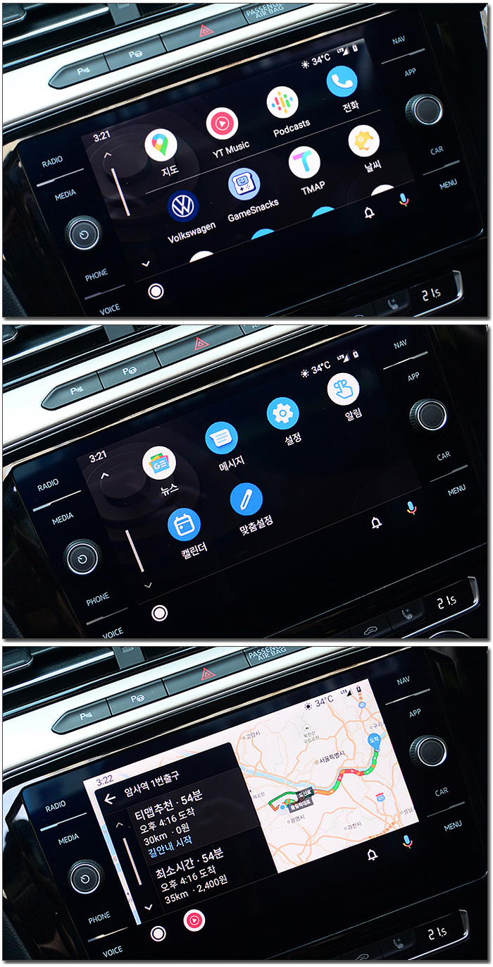 스마트폰의 각종 정보를 차량에서 확인할 수 있었다. 특히 스마트폰에 설치된 T맵을 차량의 디스플레이에 표시할 수 있어 편하게 사용할 수 있었다.