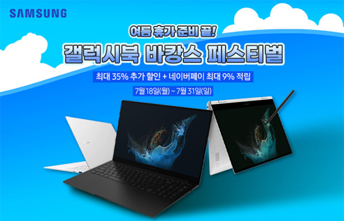 유니씨앤씨는 고화질 AMOLED 디스플레이와 초슬림, 초경량으로 뛰어난 휴대성을 자랑하는 삼성 갤럭시북2 프로 / 프로360 / 갤럭시북 프로360 등을 대상으로 최대 35% 추가 할인과 네이버페이 최대 9% 적립 등의 푸짐한 혜택이 증정되는 ‘갤럭시북과 떠나는 바캉스북’ 프로모션을 2022년 7월 18일부터 7월 31일까지 네이버 스마트스토어를 통하여 단독 진행한다.