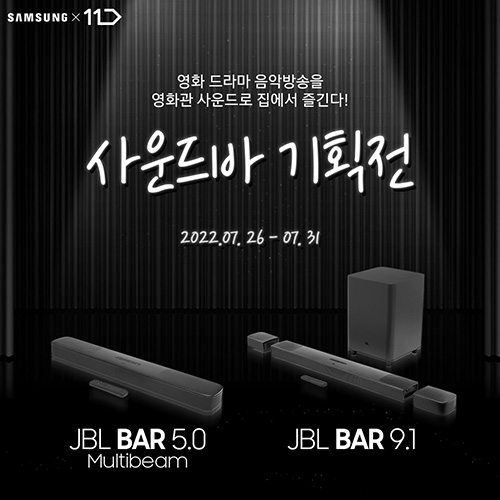 유니씨앤씨는 영화관 입체 음향 시스템인 돌비 애트모스를 지원하는 JBL BAR 5.0 Multibeam 사운드바와 JBL BAR 9.1 사운드바를 대상으로 할인 혜택이 제공되는 ‘사운드바 기획전’ 프로모션을 11번가를 통해 2022년 7월 26일부터 31일까지 진행한다.