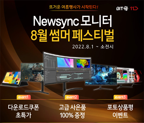 이번 행사는 무더운 여름 8월을 집에서 게임 등을 통해 시원하게 보낼 수 있도록 특가행사로 마련됐다. 행사 진행은 제품 특가 + 전제품 구입시 필립스 USB TYPE-C 케이블 사은품 증정 + 포토상품평 5천원 증정 이벤트로 구성됐다. 8월 썸머 페스티벌은 8월 1일부터 제품 소진시까지 진행된다. 이번 행사를 통해 만나볼 수 있는 비트엠 모니터는 총 54종 이다.