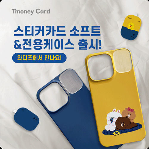 크라우드 펀딩 플랫폼, ‘와디즈’를 통해 단독 공개되는 ‘티머니 스티커카드 소프트’는 심플한 디자인이 특징인 ‘터키블루’와 귀여운 디자인의 ‘라인프렌즈 샐리’ 2종으로 만나볼 수 있으며, 카드와 세트로 사용할 수 있는 아이폰 13 Pro 전용 케이스 2종도 함께 선보인다. ‘티머니 스티커카드’가 아이폰 사용자들에게 워낙 인기가 많아 선물용으로도 큰 인기를 끌 것으로 보이며 맥세이프 카드지갑 등 아이폰 악세서리와도 함께 사용이 가능하다.