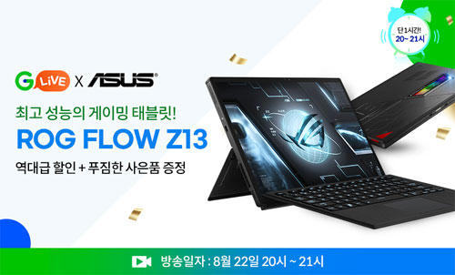 아이티블루는 8월 22일 오후 8시부터 1시간동안 지마켓 G-Live를 통해 ASUS ROG FLOW Z13의 특별 할인 및 사은품 증정 이벤트 등 다양한 혜택이 가득한 인텔 게이머 데이 라이브방송을 진행한다고 전했다.