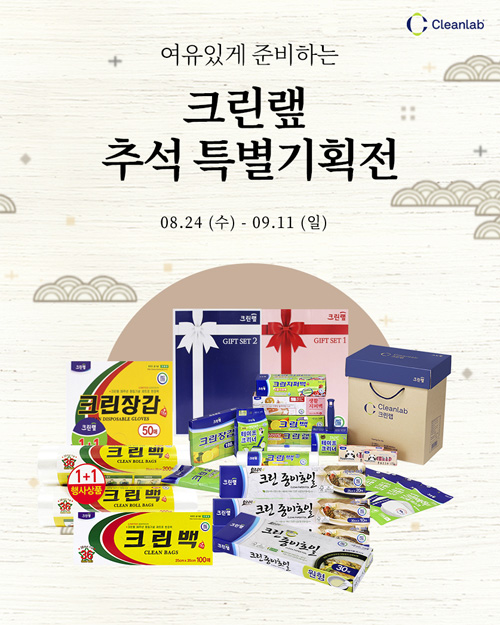크린랲이 민속 명절 한가위를 맞아 자사 온라인 공식몰 ‘크린랩몰’에서 다음 달 11일까지 필수 주방 위생용품 대상 특별기획전을 연다고 밝혔다.