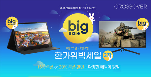 크로스오버는 자사의 인기 포터블, 게이밍, 고해상도 모니터들을 대상으로 이베이 한가위 빅세일 2차 특가전을 펼친다고 밝혔다.