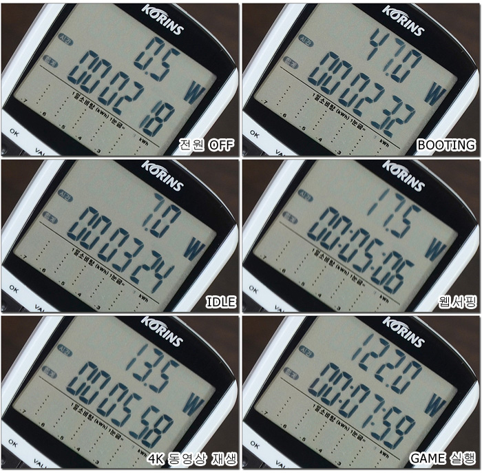 소비전력 테스트를 진행하고 있는 모습으로 (최고성능 모드) 캐주얼한 작업에서는 전력 소모가 크지 않았으며 높은 성능을 필요로 하는 게임에서는 120W 까지 소비전력이 올라갔다. (게임 실행시 60~110W 사이에서 소비전력이 변화하는 것을 확인할 수 있었다.) @ 노트북과 달리 소비전력의 움직임이 상당히 컷다. 단순 참조용으로만 봐주기 바란다.