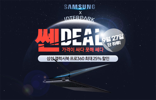 유니씨앤씨는 Super AMOLED 디스플레이와 최신 인텔 11세대 타이거레이크, 그립감이 뛰어난 S펜이 탑재된 삼성 갤럭시북 프로360 NT930QDY-A51A 대상으로 최대 35만원 중복 할인과 푸짐한 혜택이 주어지는 ‘쎈딜’ 프로모션을 2022년 9월 27일 단 하루 인터파크를 통하여 단독 진행한다.