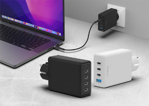 신제품 GaN 접지 멀티 고속충전기는 155W급과 115W급 두 가지 출력 타입으로 만나볼 수 있다. 모델은 ▲GS110(USB-PD 3포트, 퀵차지 3.0 1포트, 최대 153W 출력 지원) ▲GS210(USB-PD 4포트, 최대 155W 출력 지원) ▲GS310(USB-PD 3포트, 퀵차지 3.0 1포트, 최대 115W 출력 지원) ▲GS410(USB-PD 4포트, 최대 115W 출력 지원) 총 4종이다. 4개 모델 모두 단일 포트 최대 100W 고출력 지원으로 애플 M1/M2 맥북프로 및 맥북에어, LG 그램 17/16/15, 삼성 갤럭시북2, 갤럭시북 프로 등 다양한 최신 노트북 PD 충전이 가능하다. 또한 다중 PPS(Programmable Power Supply) 적용으로 초고속 충전을 지원하는 애플 아이패드 에어/프로/미니, 갤럭시탭 S8/S7 등 최신 태블릿과 스마트폰까지 동시 4대 고속충전이 가능하다.