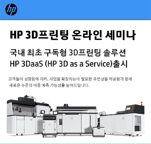 HP는 오는 28일 HP 3DaaS에 관심 있는 잠재 고객을 대상으로 ‘HP 3DaaS 웨비나’를 개최한다. 이를 통해 HP 3DaaS의 구체적인 프로그램 및 서비스 내용을 소개한다. 또한 의료기기 전문 제조업체 ‘SLMED’ 등 HP 3DaaS를 도입한 국내 고객사가 직접 서비스 이용 경험을 공유하는 세션을 마련한다.  웨비나는 별도 페이지(http://virtuosity-event.com/)에서 등록 가능하다.