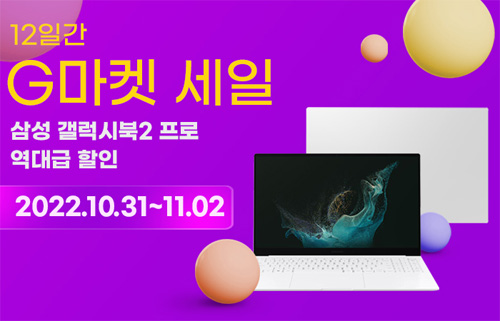 유니씨앤씨는 12일간의 G마켓 세일을 맞아 최신 인텔 12세대 CPU 탑재와 초슬림 초경량 디자인으로 뛰어난 휴대성을 자랑하는 삼성 갤럭시북2 프로 NT950XEW-A51A 모델을 대상으로 최대 44만원 중복 할인과 함께 푸짐한 혜택이 증정되는 ‘삼성 갤럭시북2 프로’ 초특가 이벤트가 2022년 10월 31일부터 11월 2일까지 G마켓을 통하여 진행한다.
