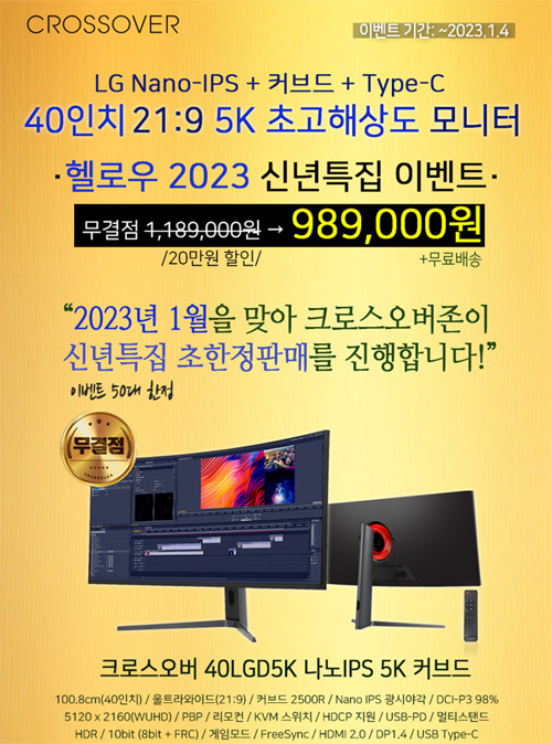 크로스오버, 고해상도 모니터 40LGD5K 나노IPS 5K 커브드 대상 신년특집 한정판매 진행