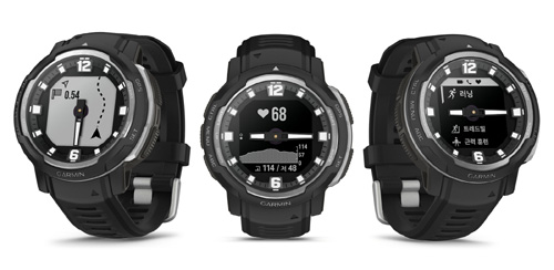 가민의 인기 라인업인 ‘인스팅트’의 첫 아날로그 디자인 신제품 ‘인스팅트 크로스오버’는 슈퍼-루미노바(Super-LumiNova) 코팅이 되어 빛이 나는 아날로그 시곗바늘이 반투과 메모리-인-픽셀(MIP) 디지털 디스플레이에 오버레이 되어 태양광 아래에서도 뛰어난 높은 가독성과 기능성을 자랑한다.
