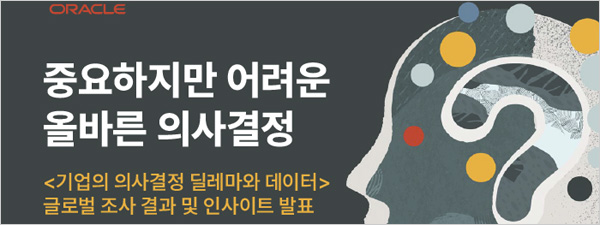 오라클이 뉴욕 타임즈 베스트셀러 선정 작가 세스 스티븐스 다비도위츠(Seth Stephens-Davidowitz)와 공동 진행한 새로운 연구 ‘기업의 의사결정 딜레마(Decision Dilemma)’의 조사 결과를 발표했다. 대한민국 500명의 응답자를 포함한 전 세계 17개국 14,000여 명의 직원 및 비즈니스 리더를 대상으로 진행된 본 조사에 따르면, 사람들은 데이터를 사용하여 의사결정을 내리는 데 부담을 느끼고 있으며, 이로 인해 삶의 질과 비즈니스 성과가 저하되고 있는 것으로 밝혀졌다. 또한, 사람들은 개인 및 업무 생활 속 더 많은 의사 결정을 내려야 하는 상황에서 그 어느 때보다 어려움을 겪고 있는 것으로 나타났다.