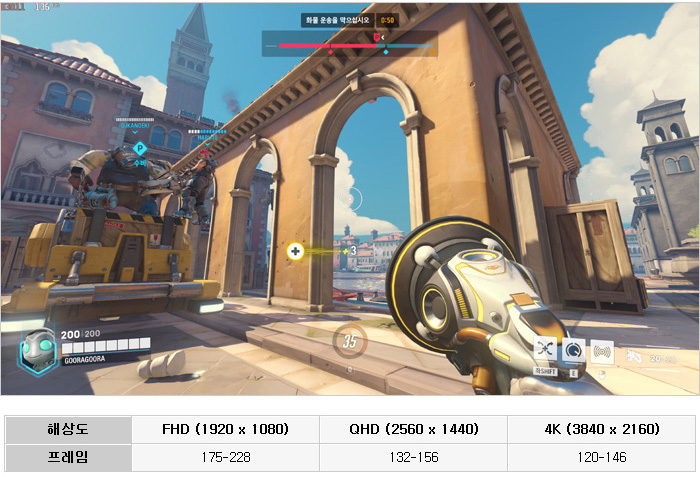 많은 유저들에게 사랑받고 있는 오버워치2 와 배틀그라운드를 플레이해 프레임을 확인하고 있는 모습으로 (오버워치2는 최상 옵션, 배틀그라운드는 울트라 옵션) FHD 와 QHD에서 게이밍 모니터 사용이 가능한 높은 프레임을 보여주었다. 여유롭게 게임을 즐길 수 있을 것이다.