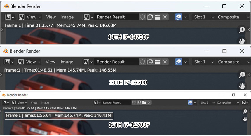 마지막으로 랜더링 시간을 비교해 보았는데 작업 시간이 줄어드는 것을 확인할 수 있다. K프로세서를 사용하면 더 빠르게 작업할 수 있지만 논K 프로세서도 성능이 상당히 뛰어나 작업용으로 전혀 부족함이 없다.