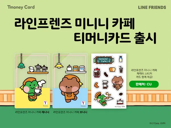 카드별 2만 장씩, 총 4만 장 한정으로 출시되는 ‘라인프렌즈 미니니 카페 티머니카드’ 2종은 귀여운 외모에 반전 매력을 가진 캐릭터 ‘미니니’를 활용한 티머니카드다. 레니니와 브니니 등 귀엽고 앙증맞은 미니니 캐릭터가 바리스타로 변신한 모습을 티머니 카드에 담아냈다. 장꾸력 넘치는 미니니 캐릭터들의 카페 알바 생활을 티머니 카드와 스티커에 담아냈다. 독특한 개성과 특징으로 자신만의 카드를 가지고 싶어 하는 요즘 소비자들에게 좋은 반응을 일으킬 것으로 기대된다.