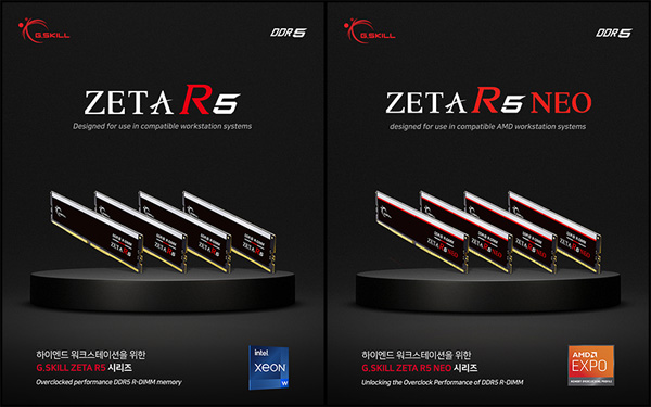 지스킬 제타 R5는 기존 PC메모리 규격인 U-DIMM(Un-buffered DIMM) 규격이 아닌, R-DIMM(Registered DIMM) 규격 모델이다. 따라서 인텔의 제온(XEON) 프로세서에는 제타 R5를 AMD의 스레드리퍼(Threadripper) 프로세서에는 제타 R5 네오(NEO)로 제품을 구분, 안정성이 최우선시되는 서버나 워크스테이션에 사용되는 특성에 부합하도록 라인업을 갖추고 있다.