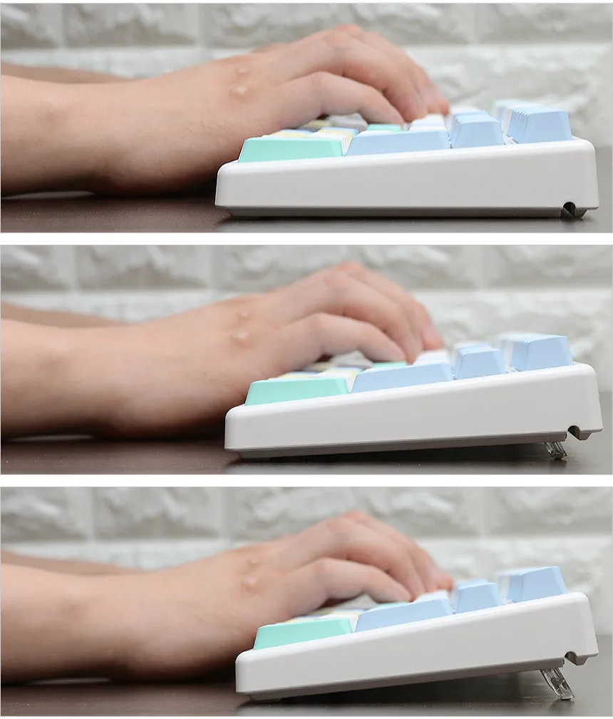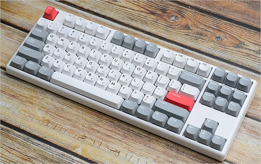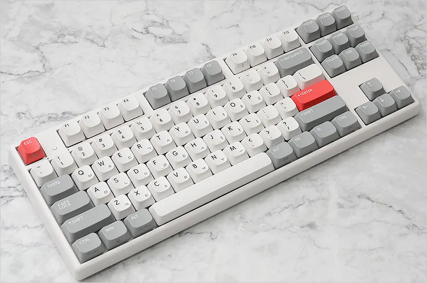 OEM 키캡은 상당히 높을 뿐만 아니라 키캡의 경사도도 기존 고급형 키보드와 달라 처음 사용할 경우 이질감을 느낄 수밖에 없다. 그에반해 동그리키캡은 더 낮은 높이로 타건시 손목의 피로도를 덜어준다. 특히 내열성과 내마모성이 강하면서도 ABS 키캡대비 두껍게 설계한 PBT 키캡을 사용해 묵직하고 정숙한 타이핑이 가능하다.
