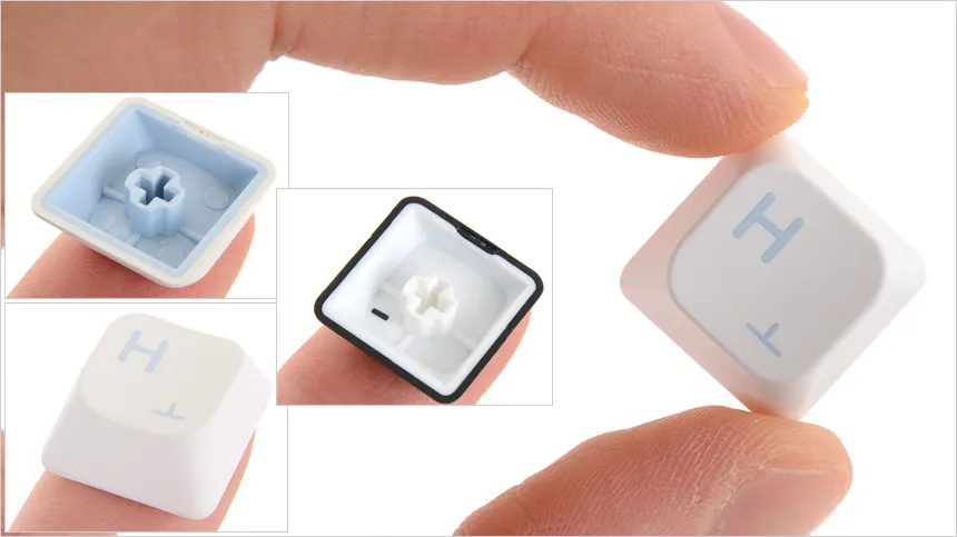 일반 키보드에 사용되는 OEM 키캡과 비교한 모습으로 표면의 스타일과 면적이 다른 것을 확인할 수 있다. 상단에 언급한 것과 같이 손가락이 클 경우 키캡에 완전히 손가락이 올라가지 않아 고속 타이핑시 오타가 발생할 수 있는데 반해 동그리키캡은 정사각형 형태에 라운딩엣지를 적용해 손가락이 크더라도 편하게 올려두고 고속의 타이핑을 할 수 있다.