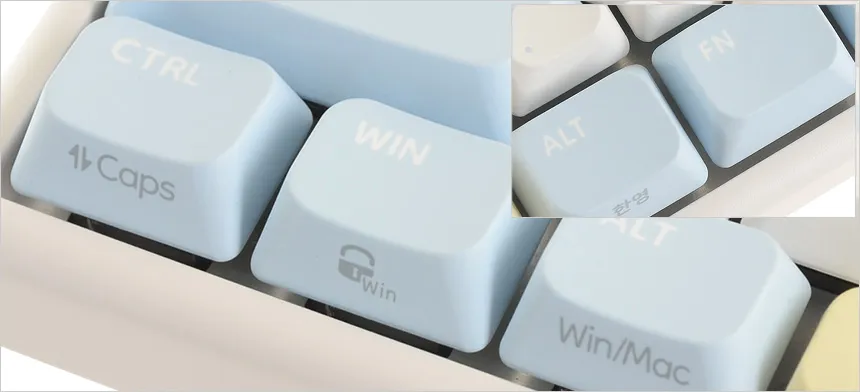 또한 폰트를 프린팅한 일부 키보드들과 달리 동그리 이중사충 컬러 키캡을 사용해 다양한 컬러 적용이 가능한 것은 물론 오랜기간 사용해도 폰트가 지워지지 않는 장점을 가지고 있다. 특히 다양한 포인트 키캡도 기본 제공해 다양한 스타일로 키보드를 연출할 수 있다.