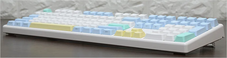 동그리키캡을 사용해 키감을 개선하고 디자인 만족감을 높인점도 아주 마음에 든다. 처음 제품을 개봉한 순간부터 예쁘다는 말이 절로 나왔을 만큼 경쟁 제품들과는 차별화된 모습을 보여 주었으며 넓은 표면적으로 편하게 키를 누를 수 있었다.
