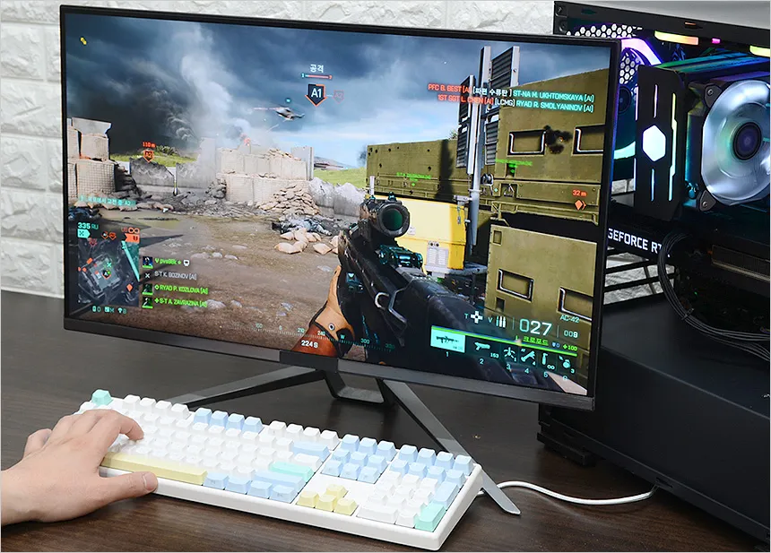FPS 게임 배틀필드 2042를 플레이 하고 있는 모습으로 무한 동시입력을 지원하는 모델답게 다중키 입력시 오작동이 전혀 발생하지 않았으며 윈도우키 잠금을 지원해 게임중 튕기는 등의 불편도 없었다. 또한 리얼 8000Hz 폴링레이트를 지원해 누르는 즉시 반응해 신속하게 움직이거나 기술등을 적용할 수 있었다.