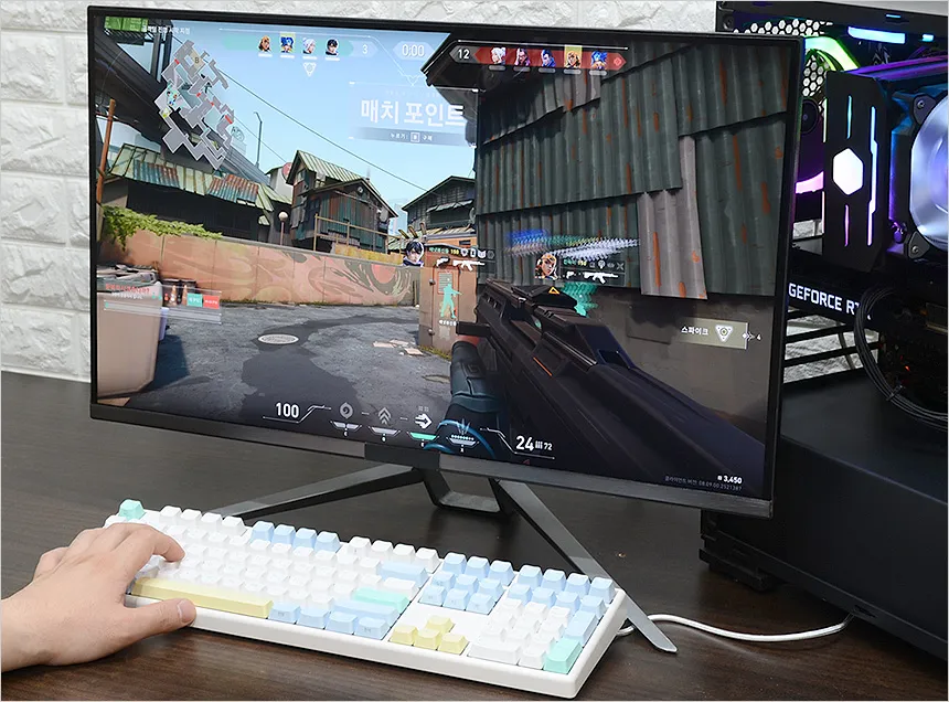 래피드 트리거 기술이 부각되고 있는 FPS 게임 발로란트를 실행하고 있는 모습으로 눌림에 따른 빠른 반응이 인상적이었으며 미세한 딜레이도 없어 의도한 대로 멈출고 싶을 때 정확하게 멈추는 것을 확인할 수 있었다. ON/OFF 만 지원하는 일부 게이밍 키보드와 달리 미세설정이 가능해 사용자의 의도에 따라 설정값을 조정하면 최상의 게임환경을 만들 수 있을 것이다.