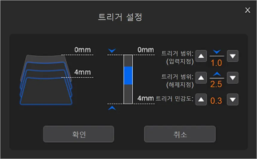 리뷰를 진행하고 있는 GK8XXB PRO 동그리 8K 유무선 무접점키보드는 전용 S/W를 통해 입력값과 해제값의 범위를 각각의 키에 다르게 설정할 수 있어 (단순히 트리거 기능을 지원하는 모델들과 달리 사용자에 맞게 설정할 수 있다.) 발로란트와 같은 FPS 게임이나 리듬게임에서 탁월한 성능을 보여준다. 오피스에 특화되었던 기존 모델들과는 완전히 다른 키보드라 생각해도 무방하다. (1000Hz 폴링레이트를 지원했던 전작과 달리 리얼 8000Hz 폴링레이트를 지원한다.)