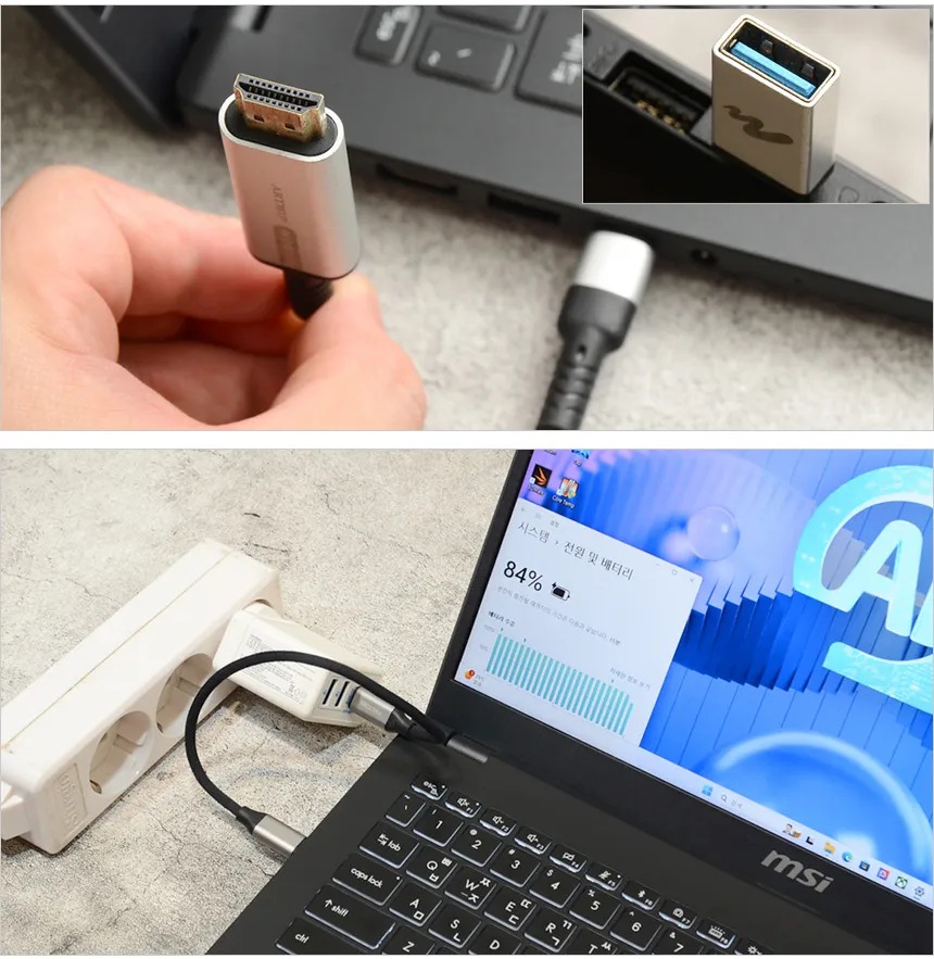 C타입 단자는 상시전원을 지원해 노트북이 꺼진 상태에서도 스마트폰 충전이 가능하다. (단, 전원은 연결되어 있어야 한다.)