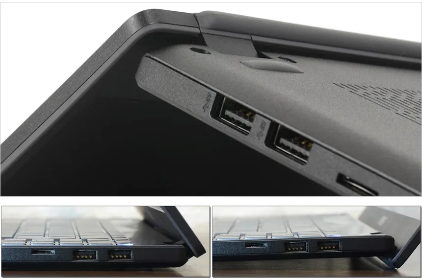 노트북 우측면의 모습으로 2개의 USB 3.2 Gen2 단자가 설치되어 편하게 주변기기를 연결할 수 있으며 데이터 백업을 위해 microSD 카드리더가 설치된 것도 확인할 수 있다.