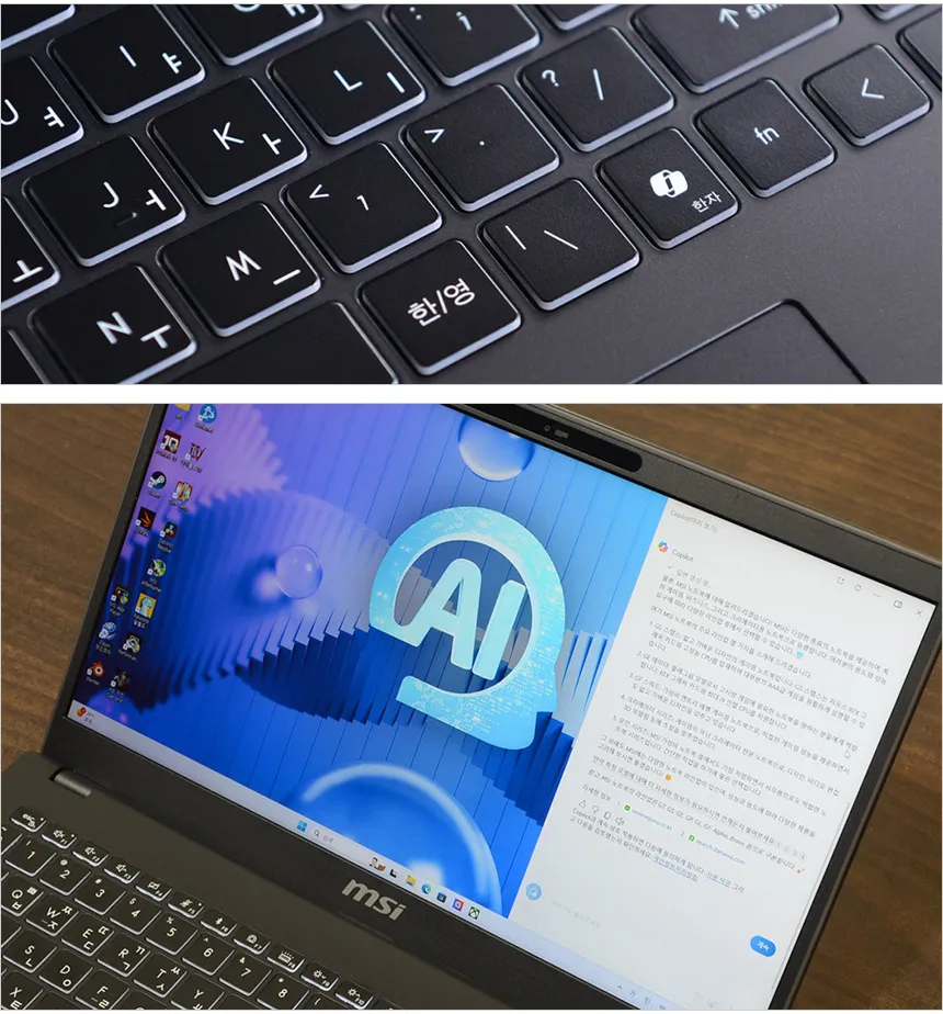 AI에 특화된 프로세서를 탑재해 전문가용 S/W 는 물론 AI 용으로도 유용하게 활용할 수 있다. 특히 MS 코파일럿 전용키를 지원해 편하게 사용할 수 있다.
