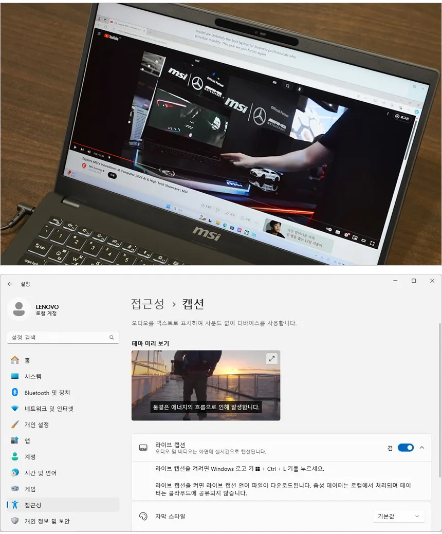 AI 가 음성을 텍스트로 변환해 주는 라이브 캡션 기능을 사용할 수 있다. 한국어를 포함한 다양한 언어의 오디오 자막을 텍스트로 표시해 주어 사무실 등에서 스피커나 이어폰을 사용하기 힘들 경우나 화상회의 에서 적극적으로 사용하기 바란다.