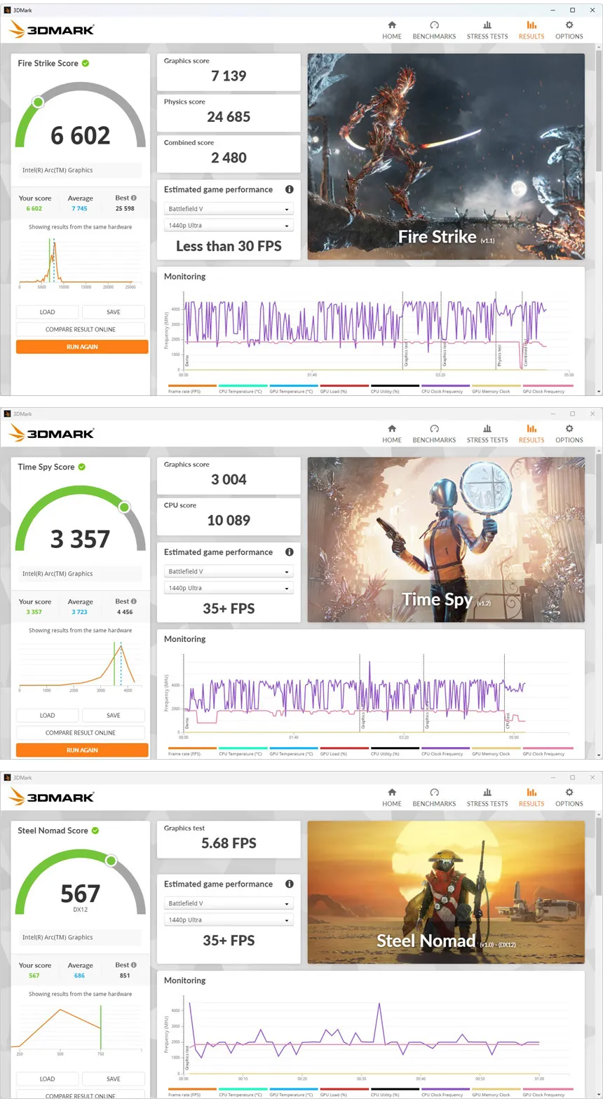 3DMARK를 이용해 3D 성능을 확인하고 있는 모습으로 옵션을 조정하고 스케일링 기술을 사용하면 최신 게임도 즐길 수 있는 높은 스코어를 보여주었다. 게임도 원활하게 즐길 수 있을 것이다.