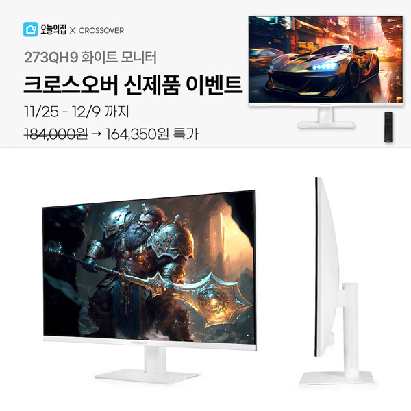 크로스오버가 27형 QHD 100Hz를 지원하는 고해상도 모니터 ‘273QH9 IPS-100 WQHD 화이트’를 대상으로 오늘의집 앵콜 특가 이벤트를 진행한다.