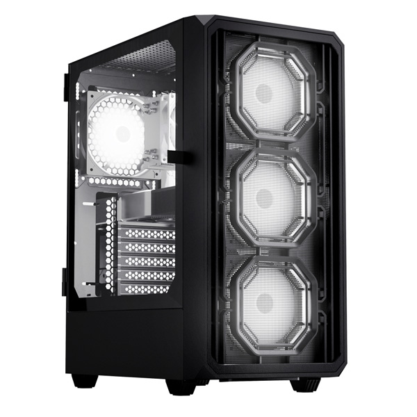 사용자 편의성도 고려했다. 전면 패널은 마그네틱 방식으로 설계돼 도구 없이 손쉽게 분리할 수 있고, 측면은 스윙도어 디자인을 적용해 조립 및 관리가 용이하다. 성능 면에서도 강점이 있다. 기본 제공되는 4개의 120mm 화이트 쿨링팬(전면 3개, 후면 1개)를 포함해 최대 8개의 쿨링팬을 장착할 수 있어 쿨링 성능이 뛰어나다. 내부 호환성도 우수하다. ATX, M-ATX, ITX 메인보드 폼팩터를 지원하며, 최대 175mm 높이의 공랭 쿨러와 최대 325mm 길이의 그래픽카드를 장착할 수 있다. 저장장치는 최대 4개의 2.5형 SSD 및 2개의 3.5형 HDD를 지원하며, PCI 슬롯은 총 7개를 제공한다.