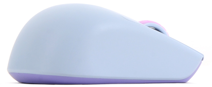 마우스 상단의 모습으로 좌우가 대칭을 이루는 양손잡이 디자인으로 설계된 것을 확인할 수 있다. 디자인 뿐만 아니라 사용환경에 따라 마우스를 선택할 수 있도록 블랙과 화이트 컬러는 확연한 피드백을 제공하는 유소음 방식을 적용했으며 코튼블루와 퍼플 하트 컬러는 도서관이나 강의실 등에서 편하게 사용할 수 있도록 저소음 버튼을 제공한다. (동영상을 통해 확인하기 바란다.)