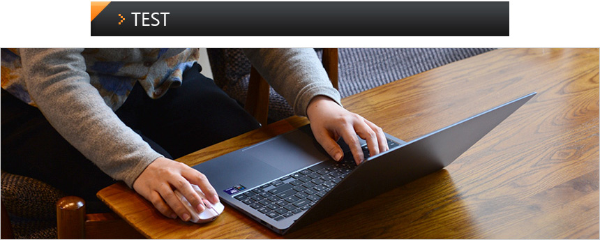 벤치마크 테스트를 진행하고 있는 모습으로 문서작업 뿐만 아니라 고성능을 필요로 하는 전문작업용 S/W도 부드럽게 실행할 수 있는 스코어를 보여주었다. 게이밍이나 크리에이터 노트북 수준은 아니지만 성능으로 인한 스트레스 없이 사용할 수 있을 것이다.
