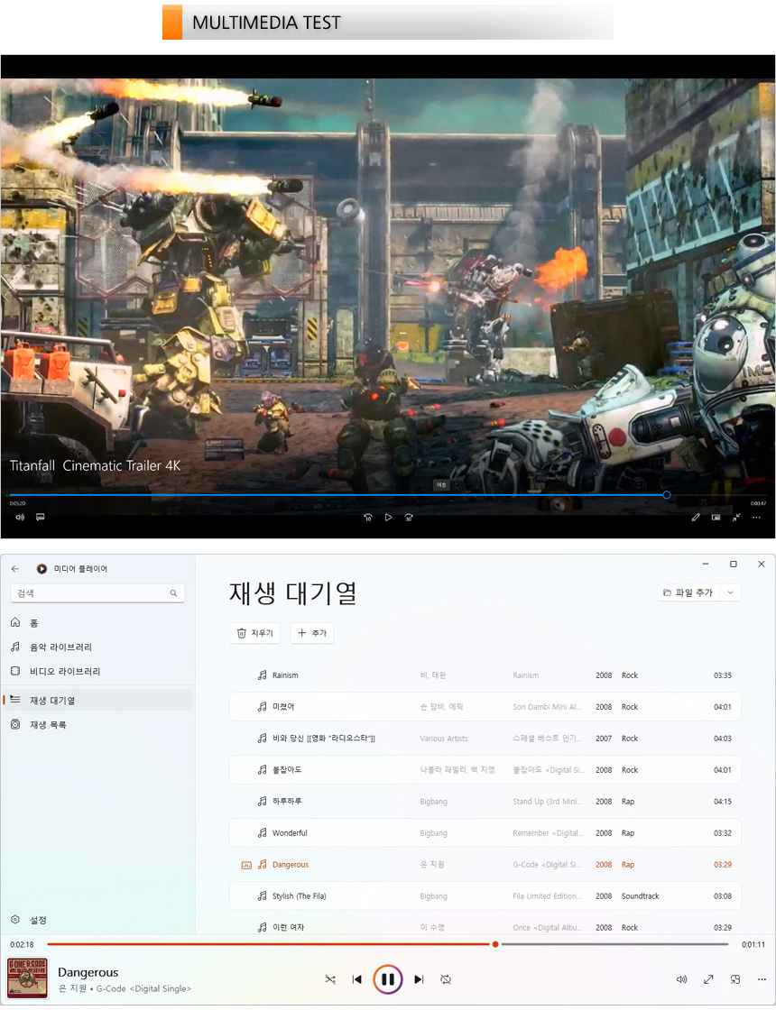 4K 고화질 동영상을 이용해 멀티미디어 테스트를 진행하고 있는 모습으로 16형 대화면에 슬림 베젤 지원으로 높은 몰입감을 경험할 수 있었으며 AMOLED 특유의 진한 컬러감과 베사 HDR 기술 지원으로 깊이감 있는 영상을 즐길 수 있었다. 폭발적인 사운드까지 더해진 노트북으로 동영상 감상용으로 유용하게 사용할 수 있을 것이다.