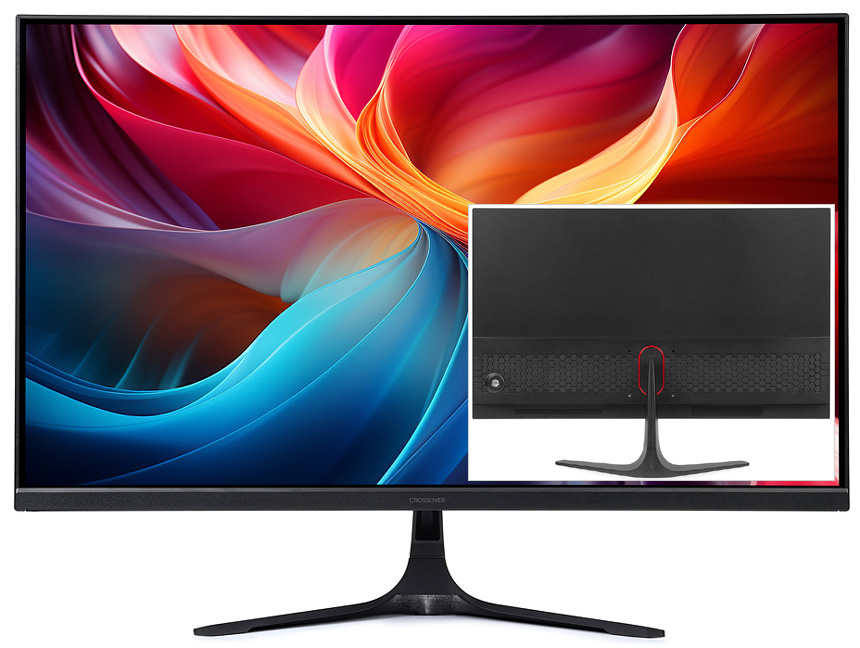 모니터 하단부의 모습으로 크로스오버 로고가 중앙에 세겨져 있다. 이 제품은 사용자의 눈건강을 위해 아이케어 기술을 지원한다. 미세한 깜빡임으로 인한 눈의 피로를 줄이기 위해 플리커 프리 기술이 적용되어 있으며 눈에 해로운 블루라이트를 최소화 할 수 있는 로우 블루라이트 기술을 지원한다.