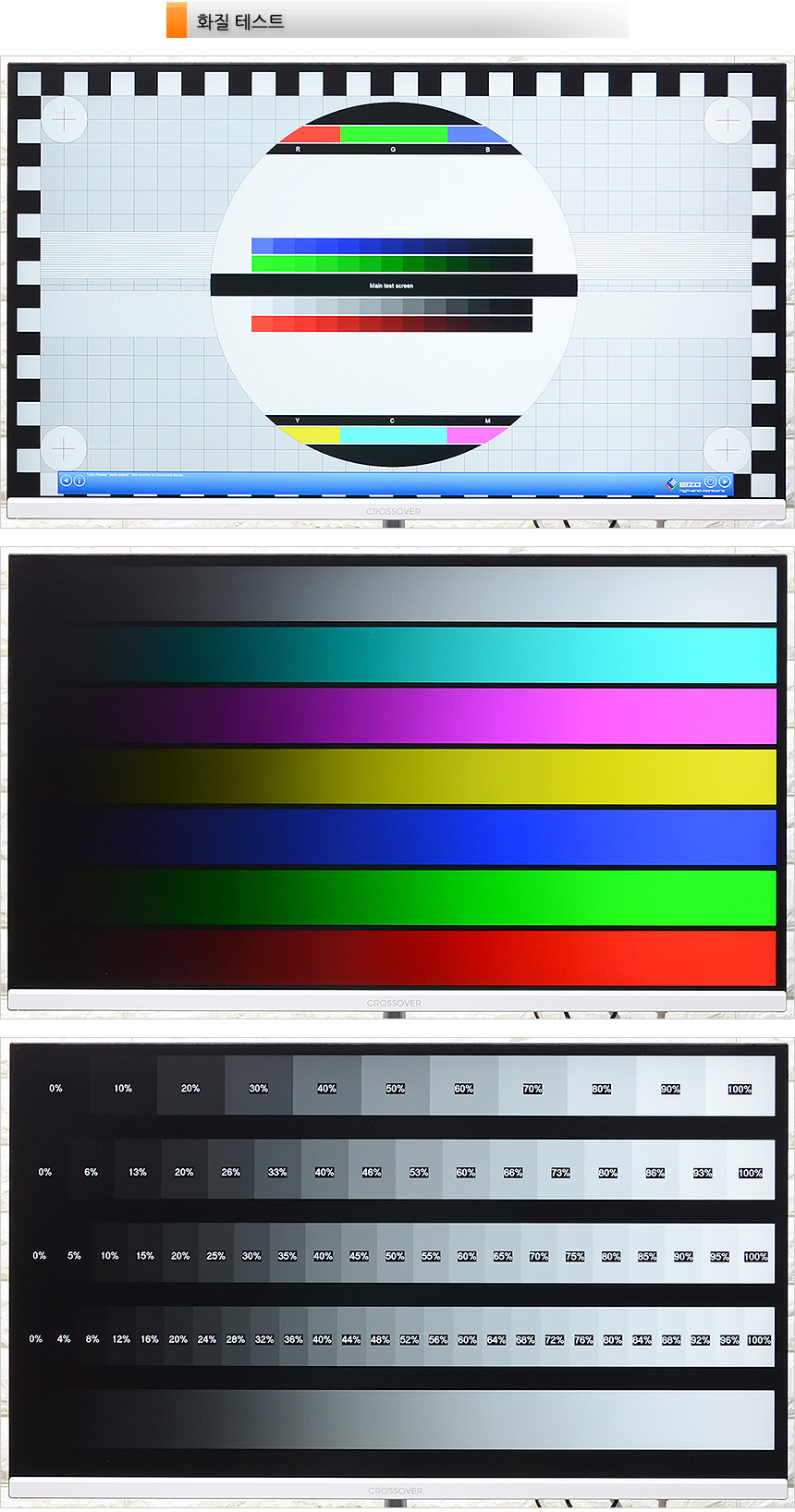 화질 테스트를 진행하고 있는 모습으로 1,670만 컬러를 지원하는 QHD 고해상도 모니터 답게 보급형 모니터를 압도하는 높은 디테일을 경험할 수 있었으며 IPS 패널이 탑재된 모델답게 색 선명도가 대단히 뛰어난 것을 확인할 수 있었다. 특히 레드 컬러가 뭉개져 눈의 피로감이 컷던 예전의 IPS 패널과 달리 레드를 비롯한 원색의 표현력이 상당히 뛰어난 것을 확인할 수 있었다. 또한 대부분의 IPS 패널 모니터와 같이 1,000:1 의 고정명암비를 지원하는 모델로 그레이스케일 차트를 구분하는데 어려움은 없었다.