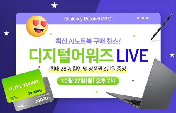 이번 방송에서는 최신 인텔 코어 울트라 시리즈 2와 WQXGA+ Dynamic AMOLED 2X 터치스크린을 탑재한 삼성 갤럭시북5 프로, 프로360을 대상으로 다양한 혜택이 제공된다.