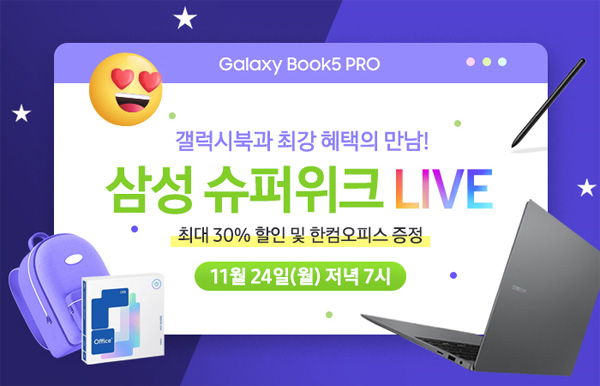 주요 혜택으로는 ▲삼성슈퍼위크 할인 쿠폰 포함 최대 75만원 할인 ▲최대 12개월 무이자 할부 ▲한컴오피스 증정 ▲다이소/올리브영 상품권 증정 ▲SSD 업그레이드 할인 등이 제공된다.
