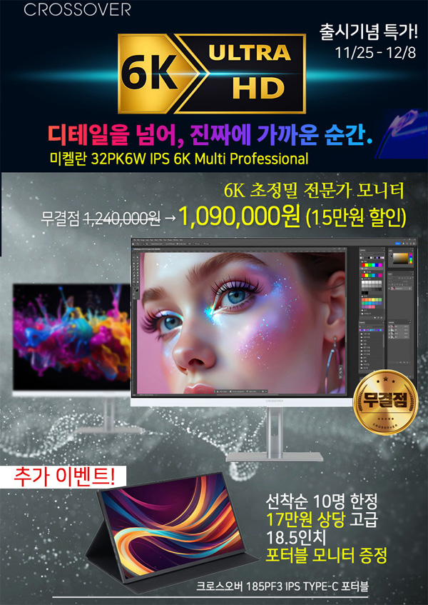 크로스오버가 6K 초고해상도 IPS 전문 모니터 ‘미켈란(MICHELAN) 32PK6W IPS 6K MULTI PROFESSIONAL’을 새롭게 선보였다.