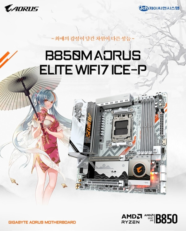 제이씨현시스템은 기가바이트 B850M AORUS ELITE WIFI7 ICE-P 메인보드를 공식 출시한다. 해당 메인보드는 기가바이트만의 새로운 캐릭터인 아리를 만나볼 수 있는 최초의 제품으로, 기가바이트의 서브컬쳐 감성을 느낄 수 있는 특별한 컨셉의 PC 빌드가 가능하다.