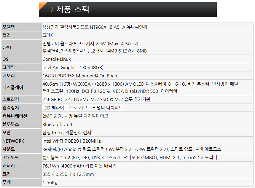 @ 삼성 갤럭시북5 프로 NT960XHZ-A51A 유니씨앤씨 보러가기