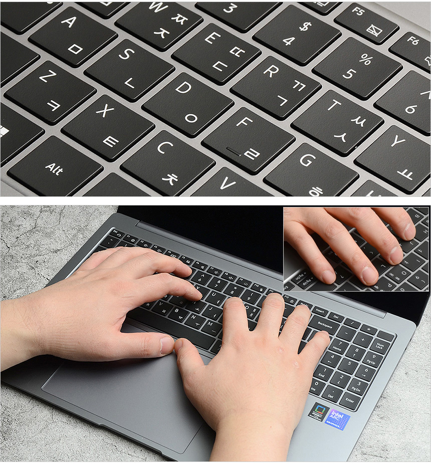 타이핑 테스트를 진행하고 있는 모습으로 구분감이 확연해 눈으로 확인하지 않고도 원할한 타이핑이 가능했다. 뿐만 아니라 넓은 팜래스트 지원으로 손 뿐만 아니라 손목까지 안정적으로 받쳐놓은 상태에서 편하게 노트북을 사용할 수 있었으며 키간격이 넓어 오타없는 고속 타이핑이 가능했다.