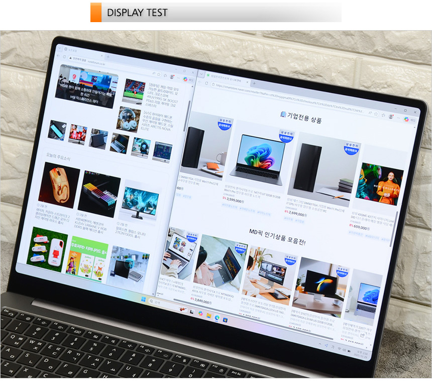 4K 고화질 동영상을 이용해 멀티미디어 테스트를 진행하고 있는 모습으로 16형 대화면에 슬림 베젤 지원으로 높은 몰입감을 경험할 수 있었으며 AMOLED 특유의 진한 컬러감과 베사 HDR 기술 지원으로 깊이감 있는 영상을 즐길 수 있었다. 폭발적인 사운드까지 더해진 노트북으로 동영상 감상용으로 유용하게 사용할 수 있을 것이다.
