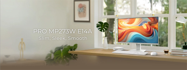 디자인은 평면 패널과 와이드(16:9) 비율을 기반으로, 깔끔하고 단정한 인상을 강조했다. 화이트 컬러 모델인 MP273W E14A는 사무실, 가정, 카페형 작업 공간 등 다양한 인테리어 환경에 자연스럽게 어울리도록 설계됐다. 베젤을 최소화한 구조로 듀얼 모니터 구성 시에도 이질감이 적다.